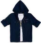 CAVIO Boys Graphic Print Casual Dark Blue Shirt