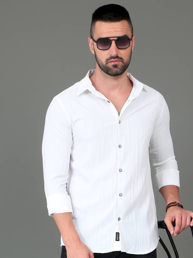 CAZZBA Men Solid Casual White Shirt