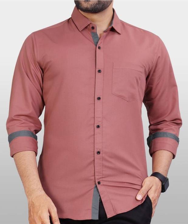 IMPRESIO Men Solid Casual Pink Shirt