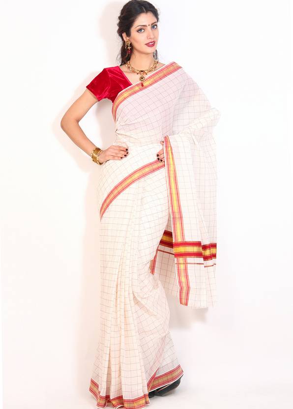 Printed Bollywood Silk Blend Saree (Red, White)