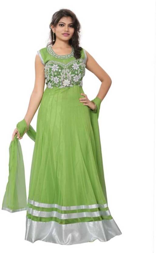 Embroidered Net Stitched Anarkali Gown (Multicolor)