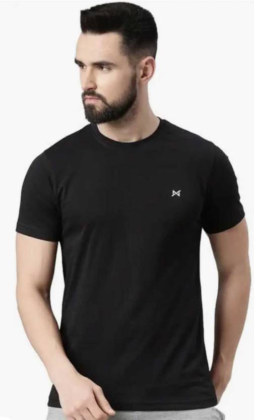 CDL Enterprises Men Solid Round Neck Cotton Blend Black T-Shirt