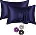CEBADA Satin Pillows Cover (45 cm*72 cm, Pack of 2, Dark Blue)