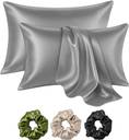 CEBADA Satin Pillows Cover (45 cm*72 cm, Pack of 2, Grey)