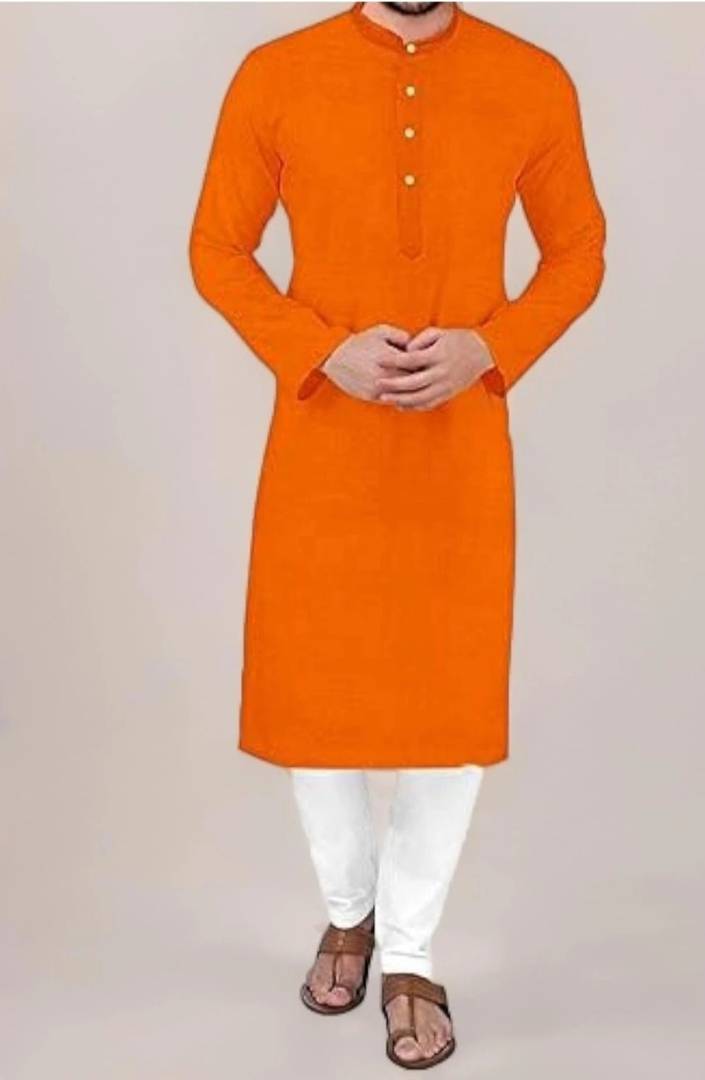 Wear this comfortable, sober, affordable kurta with pyjama set. Crafted from soft, breathable fabric, it promises comfort and style for any occasion. Pair it with matching churidar or trousers for a sharp look