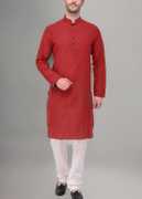 Wear this comfortable, sober, affordable kurta with pyjama set. Crafted from soft, breathable fabric, it promises comfort and style for any occasion. Pair it with matching churidar or trousers for a sharp look