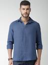 Men Solid Cotton Linen Straight Kurta (Blue)