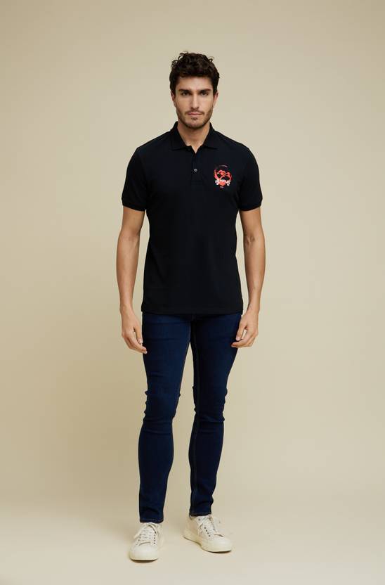 Celio Typography, Printed Men Polo Neck Black T-Shirt