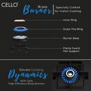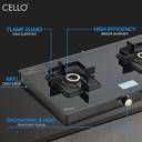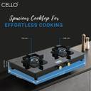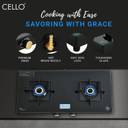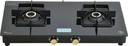 CELLO Black Pearl 2 Burner Toughened Glass Top Gas Stove, Brass Burners, Black Finish Glass Manual Gas Stove (2 Burners)