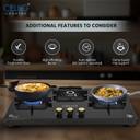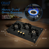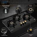 Not only is the 8mm toughened glass top aesthetically pleasing, but it is also fairly robust. Its resilience to impact ensures long-term use without compromising appearance. The glass top also gives the decor a more upscale feel. The durable and efficient brass burners are renowned for their extended lifespan. Even, steady flames aid in precise cooking, and metal conducts heat well.