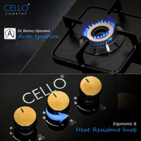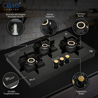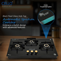 CELLO Black Pearl Glass Hob Top Cooktop Automatic Ignition, 1 Year Warranty Glass Automatic Hob (3 Burners)