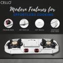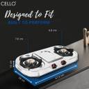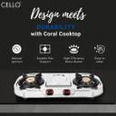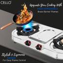 CELLO Coral High Powered Brass Burners with Manual Ignition, ISI Certified Stainless Steel Manual Gas Stove (2 Burners)