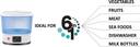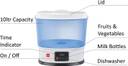 | Other Features | - Ideal for: Vegetable, Fruits, Meat, Sea Foods, Dishwasher, Milk Bottles, Capacity: 10 Liters, Lid, Controls: On/Off, Fruits and Vegetables, Milk Bottles, Dishwasher, Remove Various Residual Pesticides, Degradation of Hormone, Remove Heavy Metals, Bacteria Control, Ozone Disinfection Technology, Keeps Food Fresh for Longer Time, Wash Time: Fruits and Vegetables: 15 Minutes, Meat: 20 Minutes, Dishwasher: 18 Minutes, Ozone Output: 400 mg/hr, Time Indicator