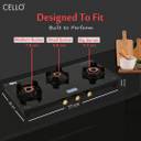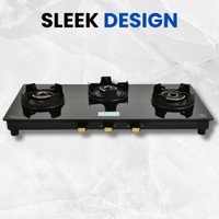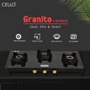 CELLO Granito 3 Burner Black Gas Cooktop, Dual Shade Toughened Glass, ISI Certified Glass Manual Gas Stove (3 Burners)
