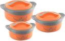 cello Solaris Stainless Steel Insulated Casserole| Firm Twist Lock | Orange Pack of 3 Thermoware Casserole Set (1500 ml, 1000 ml, 500 ml)