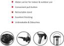 Tuff steel specially crafted, 100% food grade with thermi-guard, Keeps beverages Hot/cold for longer hours, BPA free, Water carrier for indoor & outdoor use, Convenient pull-button, Retractable stand, Stainless steel inner