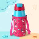 cello Kidzbee Era Unicorn 3D Print for kids | PU Insulation | Easy to Carry | 400 ml Plastic Bottle (Pack of 1, Pink, Blue)