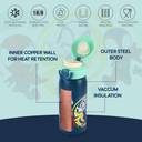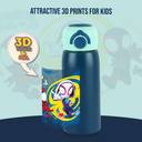 cello Kidzbee Giggle Web Warriors Thermosteel Flask | 3D Touch & Feel |Push Button Lid 380 ml Steel Bottle (Pack of 1, Blue)