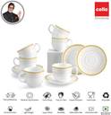 cello Pack of 12 Opalware Divine Amber Gold Cup & Saucer 160 ml (White, Cup and Saucer Set)