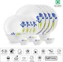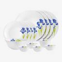 cello Pack of 17 Opalware Dazzle Opalware Blue Iris Dinner Set | Crockery Set | Blue Dinner Set (Blue, White, Microwave Safe)