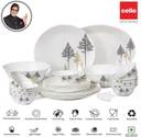 cello Pack of 33 Opalware Imperial Golden Pine 33 Pcs Dinner Set (White, Microwave Safe)