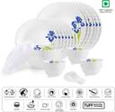 cello Pack of 34 Opalware Dazzle Blue Iris|Crockery Blue Dinner Set (Blue, White, Microwave Safe)