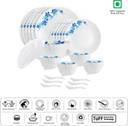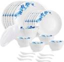 cello Pack of 34 Opalware Dazzle Series Swirl Crockery|Dishwasher|Light-Weight Dinner Set (Blue, Microwave Safe)