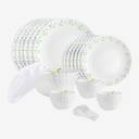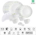 cello Pack of 34 Opalware Dazzle Opalware Tropical Lagoon Dinner Set |Crockery Set |White Dinner Set (Green, White, Microwave Safe)