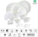 cello Pack of 37 Opalware Dazzle Tropical Lagoon-37 Dinner Set (Green, White, Microwave Safe)