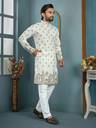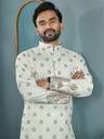 Elevate your ethnic wardrobe with this elegant men’s printed kurta, designed to offer a perfect blend of traditional charm and modern style. Crafted from comfortable and breathable fabric, this kurta features an all-over subtle motif print with a beautifully detailed floral border at the hem and sleeve cuffs, giving it a rich and festive look.