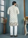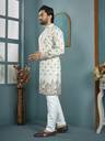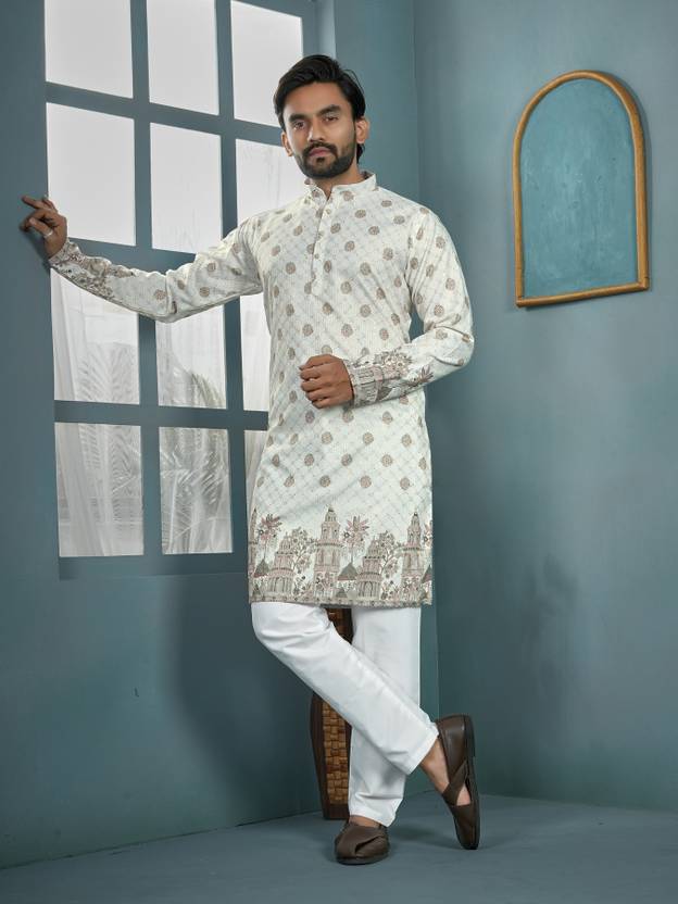 The kurta comes with a mandarin collar and buttoned placket, adding a classy and sophisticated touch. Its straight-cut silhouette ensures a comfortable fit while maintaining a sharp and stylish appearance. Ideal for festivals, weddings, family functions, and special occasions, this kurta pairs perfectly with white or off-white pyjamas or churidar.
