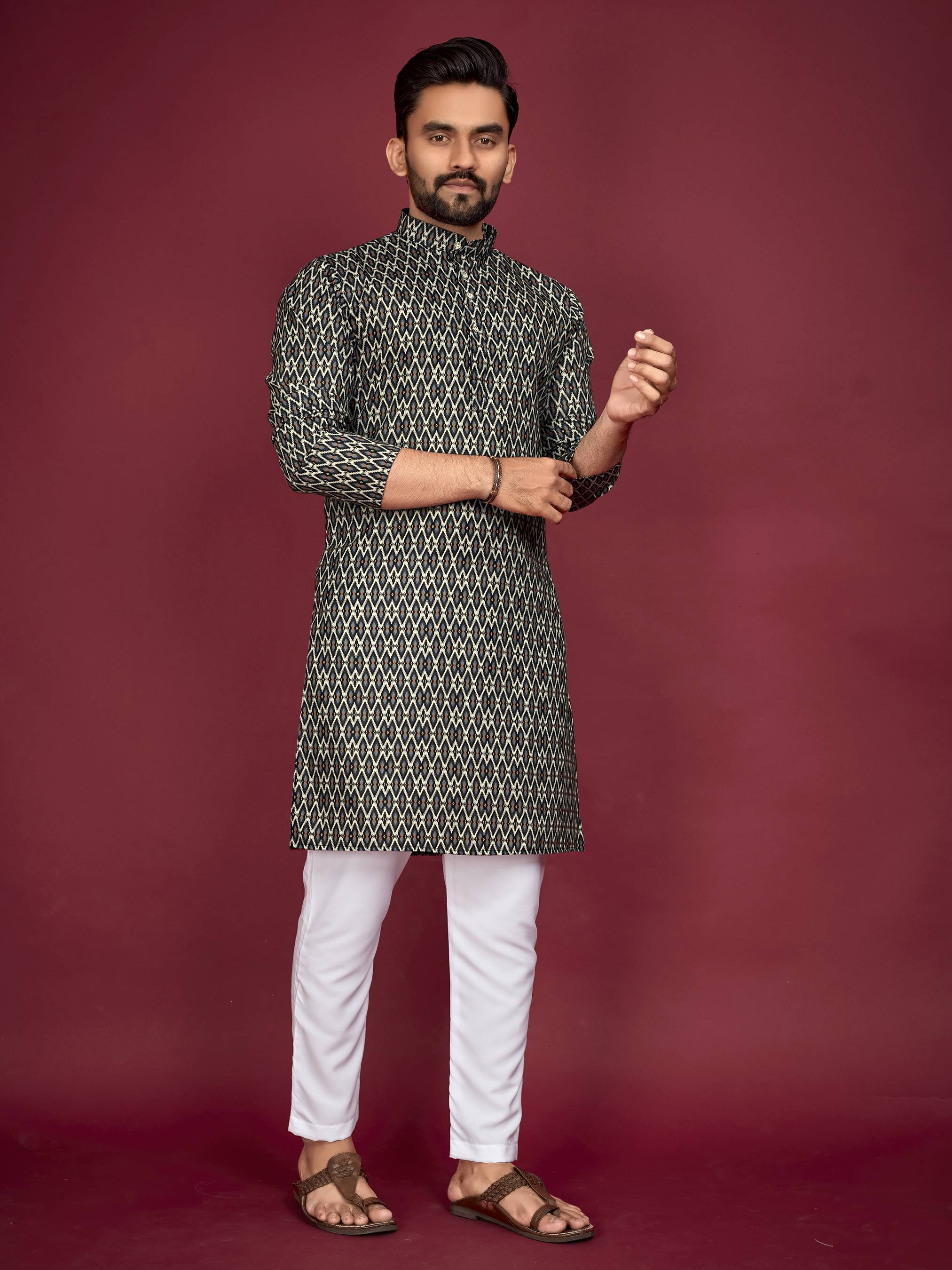 This Stylish And Traditional Slim Fit Mens Ethnic Set Or Kurta Pyjama Set Is Must Have For Any Gentleman Wardrob.This Kurta Pyjama is Made From Rich Quality Cotton Fabric.This Ethnic Set Is Designed And Stitched By Very Experienced And Skilled Person,The Kurta Have Two Pockets Which Can Easily Containt Your Wallet,Purse And Car Or Bike Key.