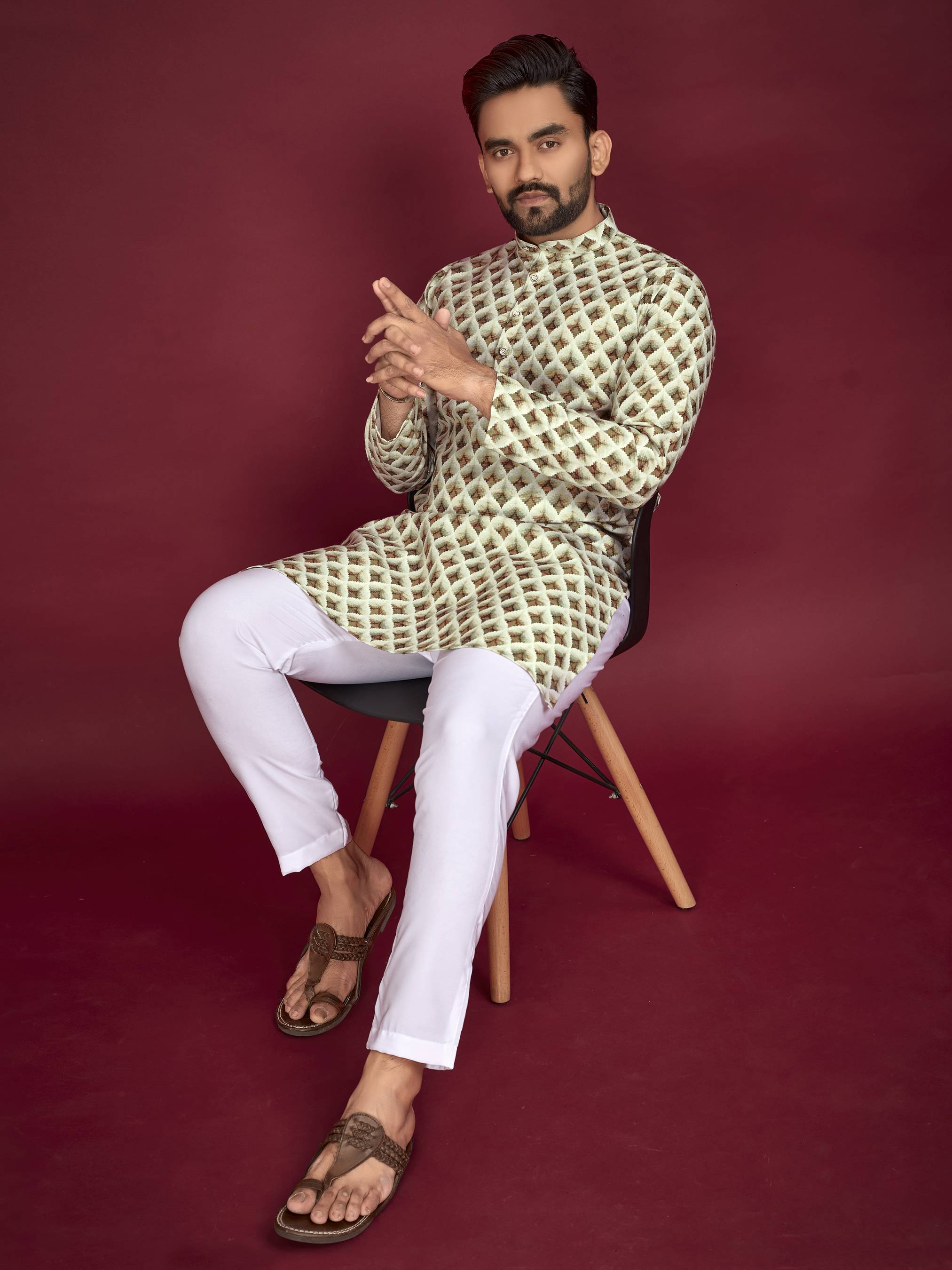 This Stylish And Traditional Slim Fit Mens Ethnic Set Or Kurta Pyjama Set Is Must Have For Any Gentleman Wardrob.This Kurta Pyjama is Made From Rich Quality Cotton Fabric.This Ethnic Set Is Designed And Stitched By Very Experienced And Skilled Person,The Kurta Have Two Pockets Which Can Easily Containt Your Wallet,Purse And Car Or Bike Key.