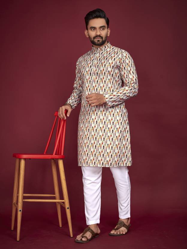 This Stylish And Traditional Slim Fit Mens Ethnic Set Or Kurta Pyjama Set Is Must Have For Any Gentleman Wardrob.This Kurta Pyjama is Made From Rich Quality Cotton Fabric.This Ethnic Set Is Designed And Stitched By Very Experienced And Skilled Person,The Kurta Have Two Pockets Which Can Easily Containt Your Wallet,Purse And Car Or Bike Key.