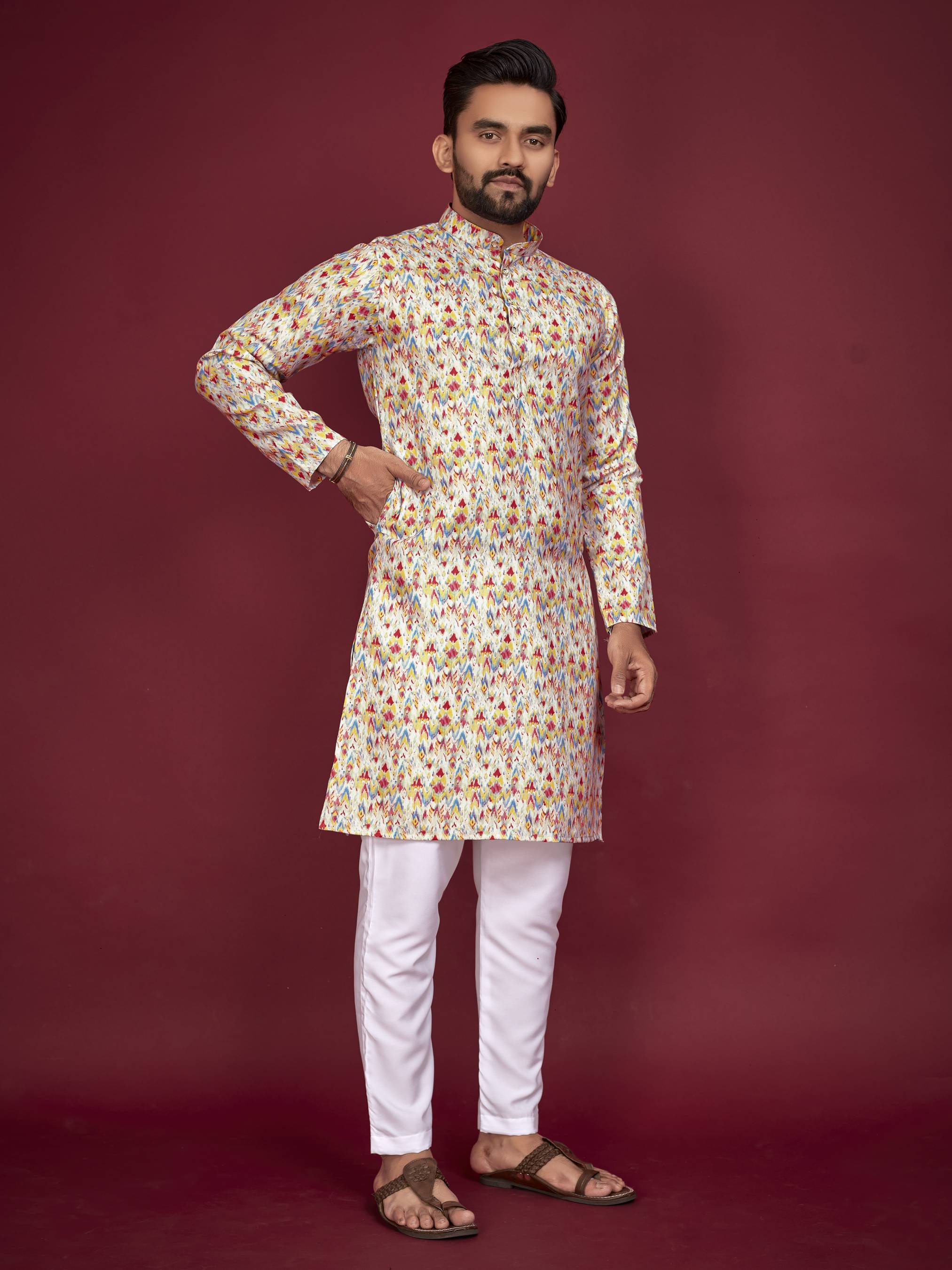 This Stylish And Traditional Slim Fit Mens Ethnic Set Or Kurta Pyjama Set Is Must Have For Any Gentleman Wardrob.This Kurta Pyjama is Made From Rich Quality Cotton Fabric.This Ethnic Set Is Designed And Stitched By Very Experienced And Skilled Person,The Kurta Have Two Pockets Which Can Easily Containt Your Wallet,Purse And Car Or Bike Key.