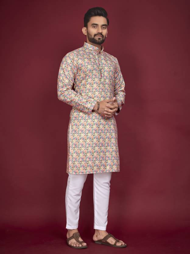 This Stylish And Traditional Slim Fit Mens Ethnic Set Or Kurta Pyjama Set Is Must Have For Any Gentleman Wardrob.This Kurta Pyjama is Made From Rich Quality Cotton Fabric.This Ethnic Set Is Designed And Stitched By Very Experienced And Skilled Person,The Kurta Have Two Pockets Which Can Easily Containt Your Wallet,Purse And Car Or Bike Key.
