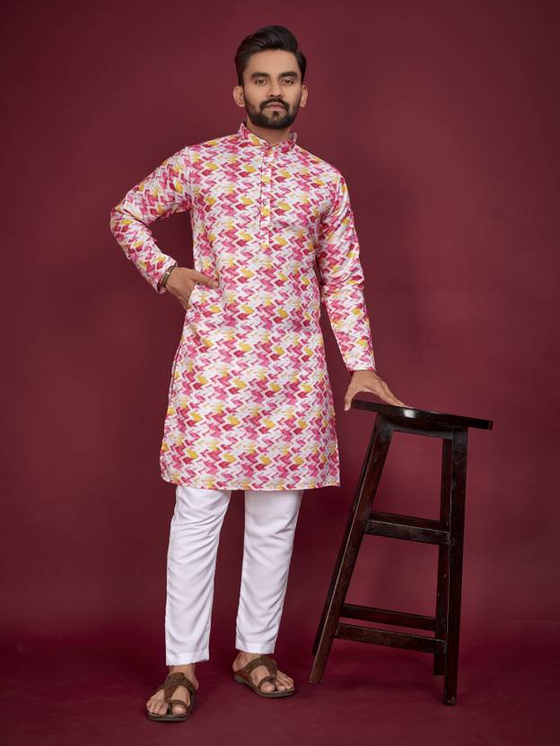 This Stylish And Traditional Slim Fit Mens Ethnic Set Or Kurta Pyjama Set Is Must Have For Any Gentleman Wardrob.This Kurta Pyjama is Made From Rich Quality Cotton Fabric.This Ethnic Set Is Designed And Stitched By Very Experienced And Skilled Person,The Kurta Have Two Pockets Which Can Easily Containt Your Wallet,Purse And Car Or Bike Key.