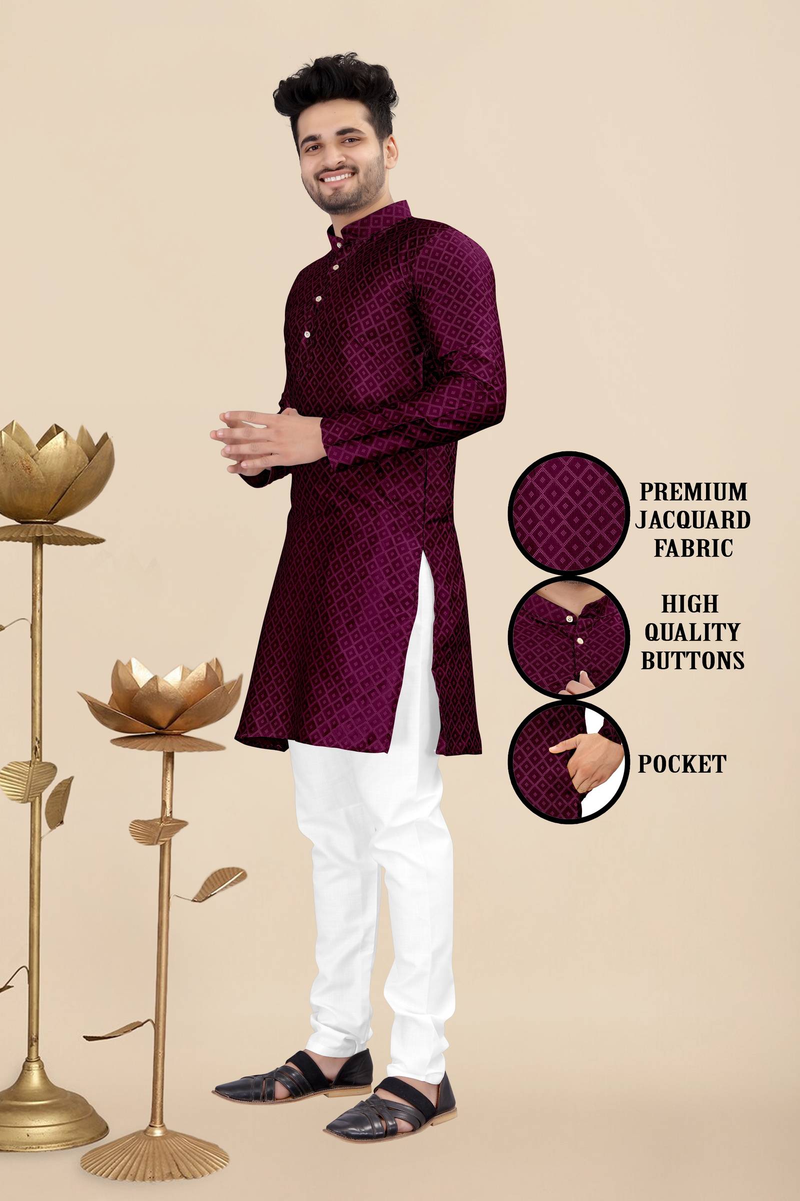 Men's kurta pyjama sets are popular traditional Indian outfits that consist of a kurta (a long shirt) and matching pyjamas (loose-fitting pants). These sets are widely worn for special occasions, festivals, weddings, and cultural events. They provide a classic and elegant look while offering comfort and ease of movement.