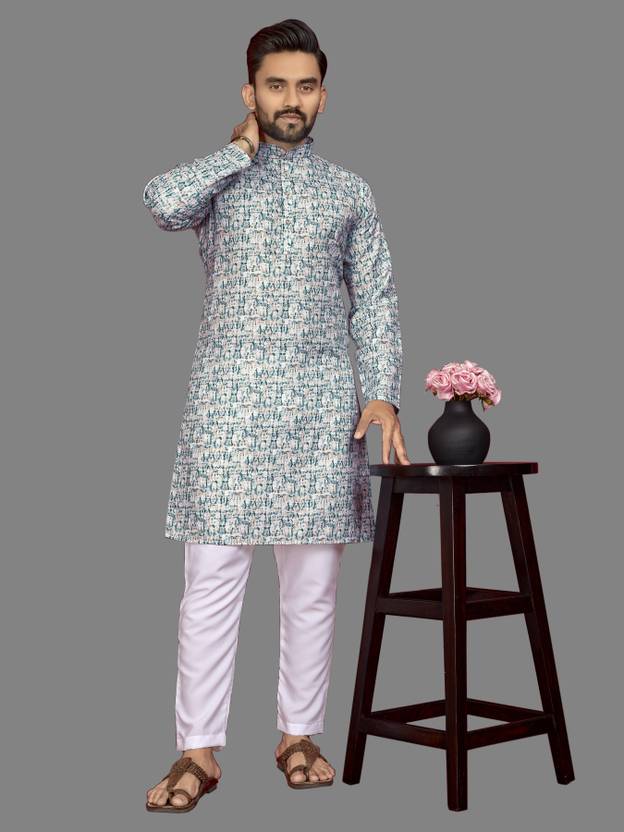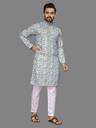 Men Cotton Blend Kurta Pyjama Set
