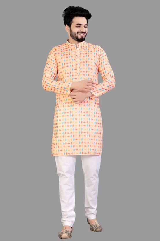 This Stylish And Traditional Slim Fit Mens Ethnic Set Or Kurta Pyjama Set Is Must Have For Any Gentleman Wardrob.This Kurta Pyjama is Made From Rich Quality Cotton Fabric.This Ethnic Set Is Designed And Stitched By Very Experienced And Skilled Person,The Kurta Have Two Pockets Which Can Easily Containt Your Wallet,Purse And Car Or Bike Key.