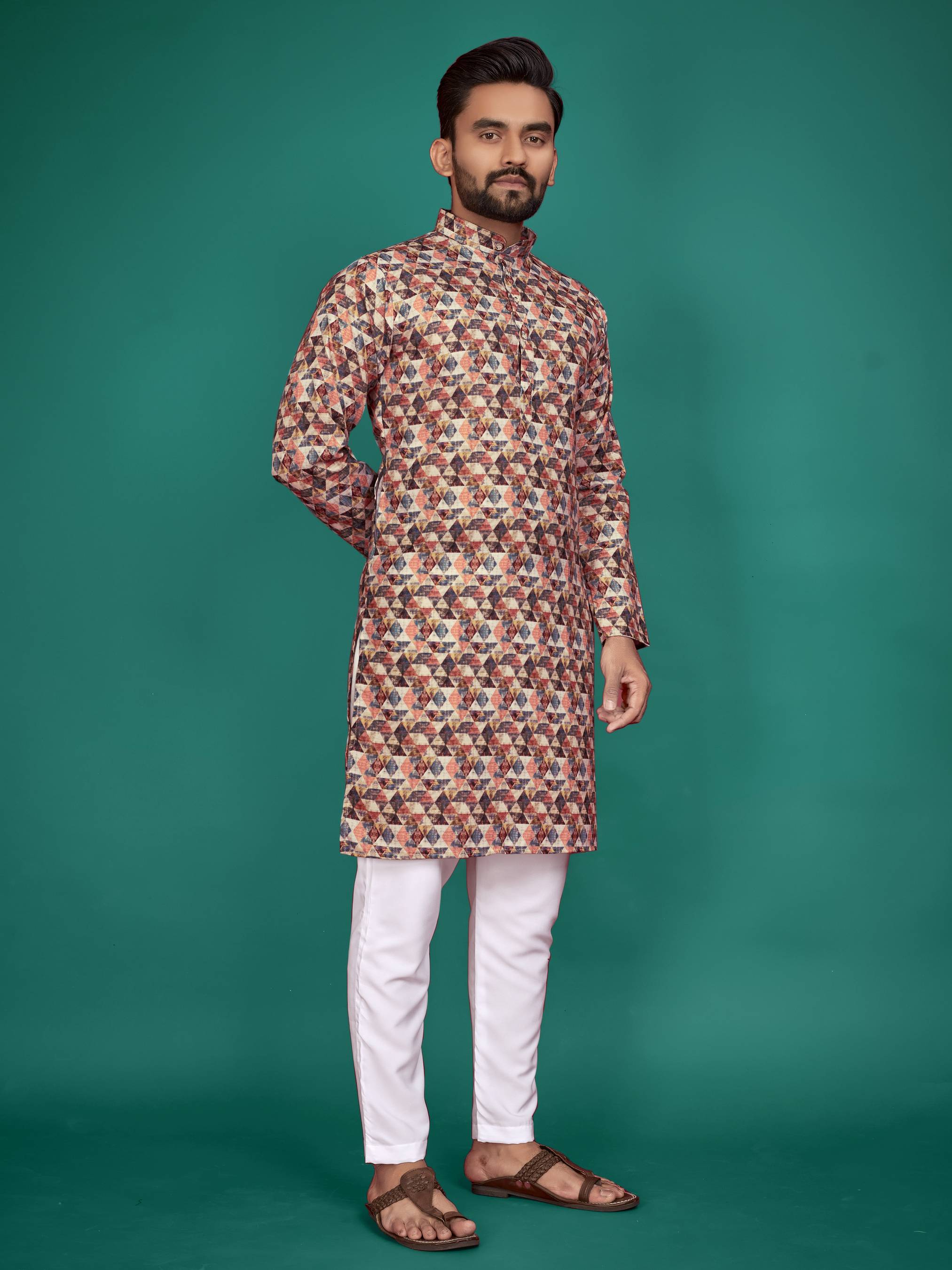 This Stylish And Traditional Slim Fit Mens Ethnic Set Or Kurta Pyjama Set Is Must Have For Any Gentleman Wardrob.This Kurta Pyjama is Made From Rich Quality Cotton Fabric.This Ethnic Set Is Designed And Stitched By Very Experienced And Skilled Person,The Kurta Have Two Pockets Which Can Easily Containt Your Wallet,Purse And Car Or Bike Key.