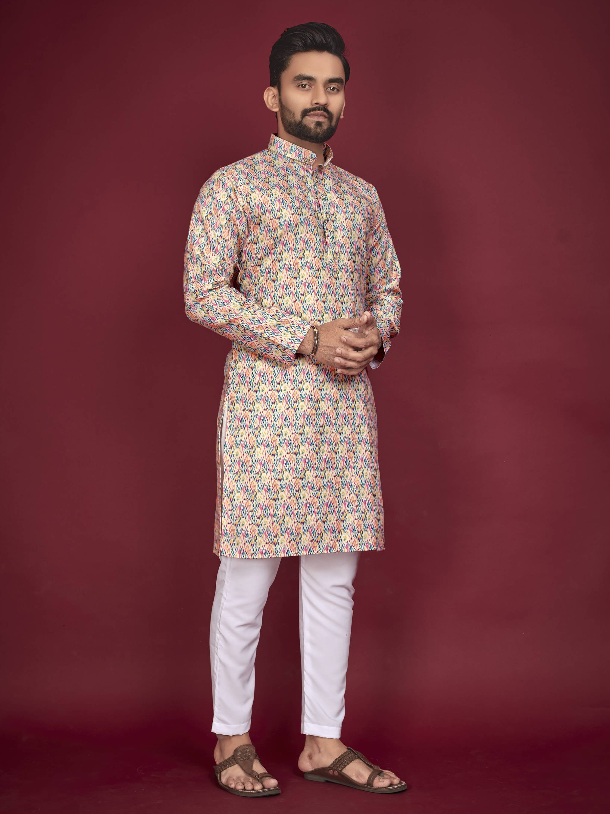 CELLUX Men Printed Cotton Blend Straight Kurta  (Multicolor)