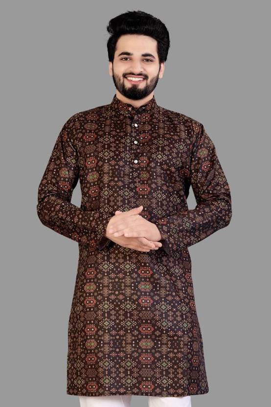 Printed men's kurtas are a popular choice for adding a touch of style and vibrancy to traditional ethnic wear. These kurtas feature various patterns, motifs, or designs that are printed onto the fabric, creating an eye-catching and unique look. The prints can range from intricate floral designs to geometric patterns, abstract motifs, or even contemporary graphics.Printed men's kurtas can be paired with traditional bottom wear such as pajamas, churidars, or even jeans for a fusion look.Whether it's a family gathering, a wedding, or a festive occasion, printed men's kurtas add a stylish and contemporary touch to traditional attire, making them a versatile and fashionable choice for men.