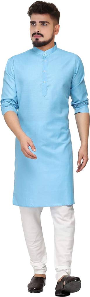 CELLUX Men Solid Straight Kurta (Light Blue)
