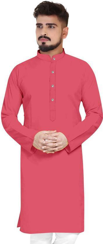 Rajababu Men Solid Ethnic Dress Kurta (Pink)