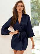 CELOSIA Satin Kimono night Robe is made up of good quality satin fabric. The material used in making this night robe is of very soft and comfortable on skin. The design of the Kimono robe is very elegant which has drop shoulders with long sleeves of 3/4th length. This night robe nightwear comes in short length. The beautiful satin Kimono night robe helps you relax and sleep well. It is sure a wonderful gift for your loved once specially on wedding, anniversary, birthdays or any other special night.