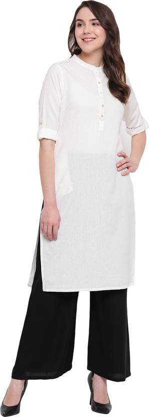 CENIZAS Women Solid Cotton Blend Straight Kurta (White)