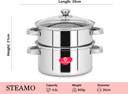 CENTURA Stainless Steel 2-Tier Steamer (4.5L) For Cooking/Boiling/Baking/DeepFry - 20CM Stainless Steel Steamer (4.5 L)