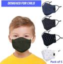 CENWELL 5 Pc Cotton Kids 3D Face Mask Reusable Fabric N95 Black Mask for Boys Girls KIds Mask 6 Cloth Mask With Melt Blown Fabric Layer (Free Size, Pack of 5)