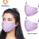 CENWELL WOMEN PINK 100% Cotton Protective Fashionable Fabric N95 Cotton Face Mask Women with Adjustable Earloop ,Adjustable Strap & Free Hand Sanitizer, Anti-pollution, Anti-virus and Anti-bacterial Fabric N95 PINK MASK Water Resistant, Reusable, Washable Cloth Mask With Melt Blown Fabric Layer (Pink, Free Size, Pack of 2)